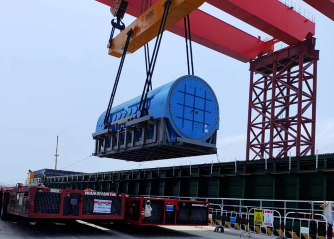 7月15日15时30分,中核机械工程成功完成了徐大堡核电3号机组定子的卸船与运输任务,为后续各项工程节点奠定了坚实基础。