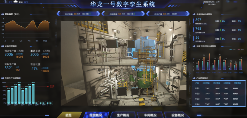 2022年,中核武汉、福清核电开启华龙一号数字孪生系统的研发,该系统依托基于模拟机的高精度系统设备模型和三维轻量化实景模型,依靠工业互联网平台(DHP)、安全生产管理系统(ASP-1)、时序数据库等关键技术平台和软件,实现物理电厂到孪生电厂的数据贯通及业务交互,形成可信的验证环境及模型资产,支撑操作预演、运行优化以及方案验证等电厂智慧运维应用。