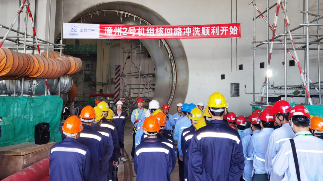 7月18日,随着中压安注隔离阀开启,水流从中压安注箱奔向漳州核电2号机组压力容器,安注箱第一罐水于上午10时冲洗完成,标志着中核二三承建的漳州核电2号机组核回路冲洗工作正式启动,由区域施工阶段全面转入系统施工阶段,向实现冷试目标迈出了坚实一步。 为确保核回路冲洗节点顺利实现,中核二三漳州项目部成立专项组,采用沙盘推演、内部早会、外部专项会等措施,加大与业主、监理、总包、土建等单位联动,做到整体协同,有力促进了问题的快速解决,确保核回路冲洗目标的顺利实现。 核回路冲洗,是核岛安装阶段的一个重要里程碑,标志着核岛主要核辅助系统主体工程安装完成。核回路冲洗指在系统安装后、调试前对核岛主系统RCS、核辅助系统RSI、RCV、RFT、RHR、REB及高压RVD系统,以压力容器为临时排水坑进行联合冲洗,使系统达到规定的清洁度要求,为后续一回路水压试验创造条件。