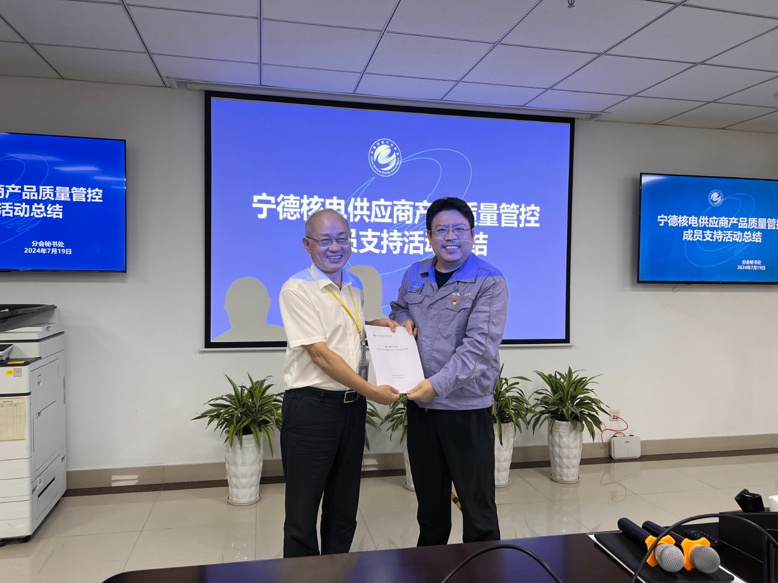 2024-04-30 2024年7月15日至19日,中国核能行业协会组织行业专家团队对福建宁德核电有限公司(以下简称宁德核电)开展供应商产品质量管控成员支持活动。本次活动由中国核能行业协会核电分会特邀专家、中国核工业集团外派董事、中核检修有限公司原董事长黄志军担任队长,4名专家分别来自中核运维技术有限公司、山东核电有限公司和中核苏能核电有限公司。宁德核电副总工程师毕业成,设备管理部、工程管理部、机械部、仪控部、电气部、生产服务部、技术部、计划部、质保部、生产服务部及合同部等20余人参加了此次成员支持活动。