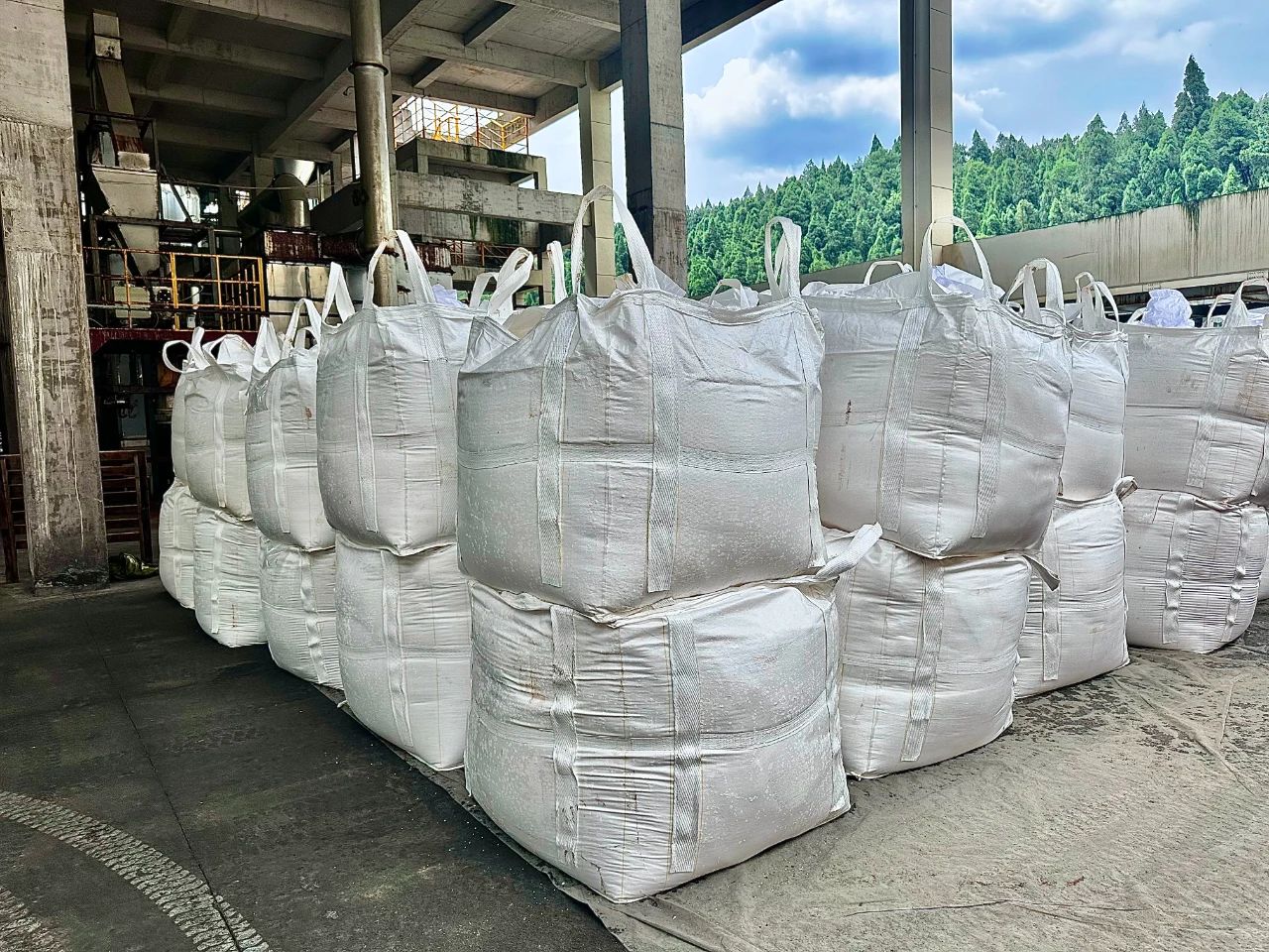 ▲由产出水浓缩加工成的工业盐被打包好