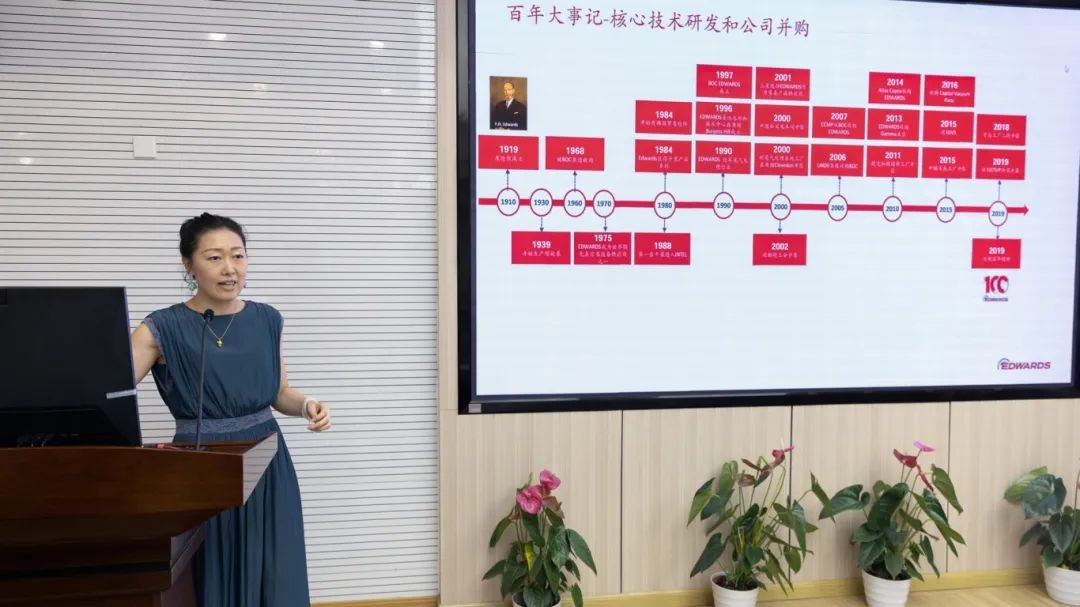 EDWARDS 科研真空业务总监王风美介绍了 EDWARDS 的百年历史和技术优势。她希望以共建真空测试与校准联合实验室为契机,为未来双方的合作奠定坚实的基础。