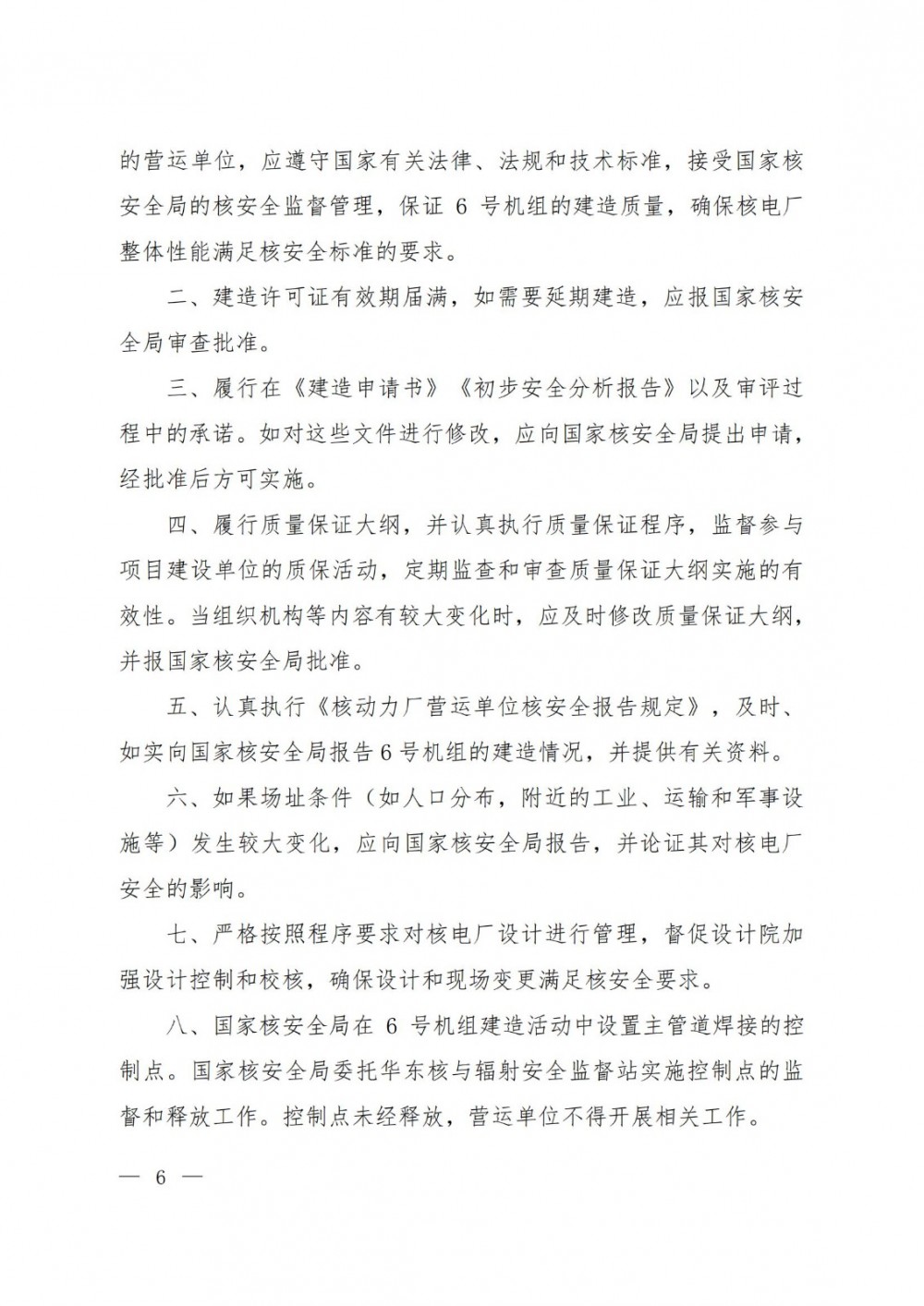 2.福建宁德核电厂6号机组建造许可证