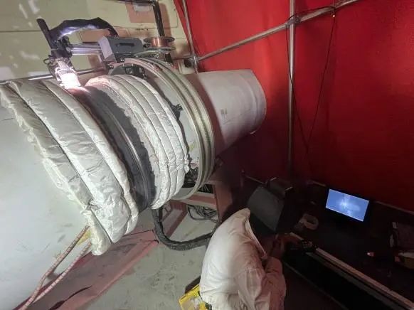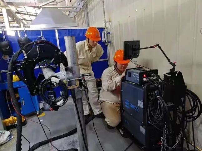 在焊接自动化领域,卡钳式自动焊机虽有较多应用案例,但常规设备因机械设计、结构限制等原因无法集成熔池监控系统,焊接过程中操作工人需要佩戴焊帽等安全防护工具观察熔池状态,未能充分降低焊接工人的劳动强度,且依然存在劳动安全风险,并无法处理焊接过程中的观察盲区,未能完全发挥出自动焊的特点和优势。中核二三自动焊设备研发团队聚焦痛点,大胆尝试,结合核电现场工况,经过大量试验、改进、优化,实现了行业内首次在卡钳式自动焊设备上应用具备高强度耐湿耐热、监控画面全域高清、熔池特征清晰可见的焊接过程实时监控系统,为卡钳式自动焊设备增附一双能识弧辨焊的火眼金睛。