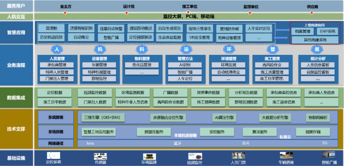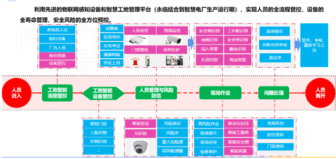 本项目应用地陆空天一体化智慧工地管理系统,该系统充分利用物联网、大数据、云计算、人工智能等先进技术,为华能石岛湾核电扩建一期工程量身打造全面的智慧工地解决方案。该方案涵盖了智能监控、数据分析、安全预警、人员管理、风险管控等多个方面,为项目施工提供了全方位、智能化的支持。通过智能预警系统,可以自动识别并报警异常情况,确保施工安全可控。