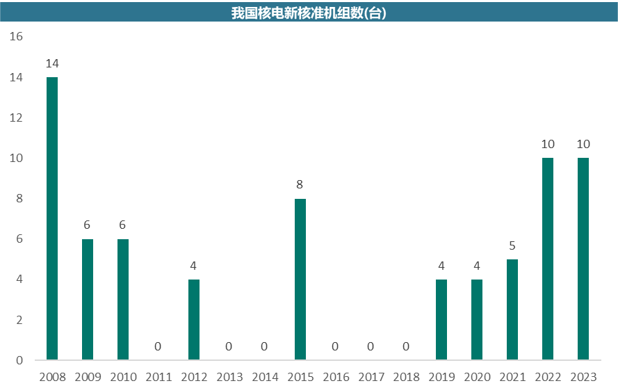 2015年,随着AP1000、CAP1400、华龙一号等三代技术路线的初步成熟,我国重启了核电项目的审批,核准了8台新建机组项目。但是,由于位于浙江三门的世界首堆AP1000(从美国引进)机组因技术问题出现延期,与其一脉相承的CAP1400技术应用相应延后,我国自主研发的华龙一号技术同样暂未有大规模商用的条件,此后新核准项目再度放缓。