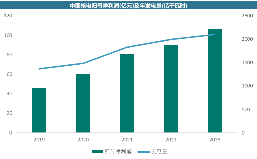 我国的核电运营商呈现双寡头的格局,中国核电和中国广核占据了全国发电机组数量的95%左右。随着在建机组的不断投运以及爬产,核电运营商的发电量的稳步上升。