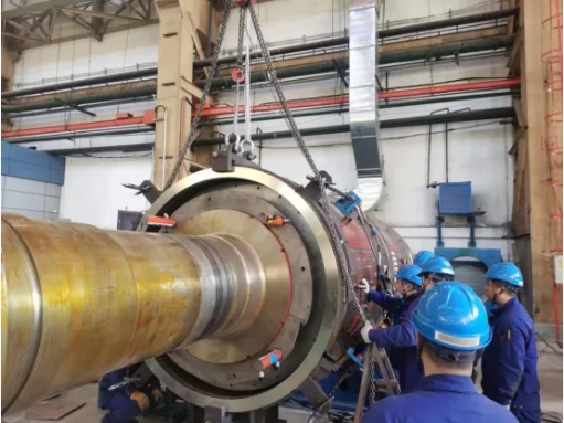 汽轮发电机的成长之路过程漫长,制造过程历经各种挑战,比如:在低压转子制造现场,从胚料浇铸开始,需要用三个钢包一次浇筑成型,整个钢锭重600吨,锻造时需要用到15000吨锻造机塑造成型,期间要反复回炉升温十多次,之后需要通过多种机床经过漫长的加工给转子瘦身。最终成为合格产品时仅剩164吨,减重超过七成。在发电机定子制造现场,总共有19万余张高导磁硅钢片,需要通过叠片装配工人手工安装,且安装精度必须控制在毫米之内,极为考验工人的耐心和细心。在发电机转子制造现场,热套护环衬套是一项要克服重重关卡的关键工序,鉴于绝缘衬套材料性能原因,仅有一次加热机会,首先要确保绝缘衬套、护环加工及加热过程必须百分百不变形。加热膨胀后要在20分钟内由多名工人高度配合,精准无误地将护环衬套套在转子汽励两端。得益于质检人员、监造工程师日夜的监督守护,确保汽轮发电机身康体健出厂奔赴最终的归宿。