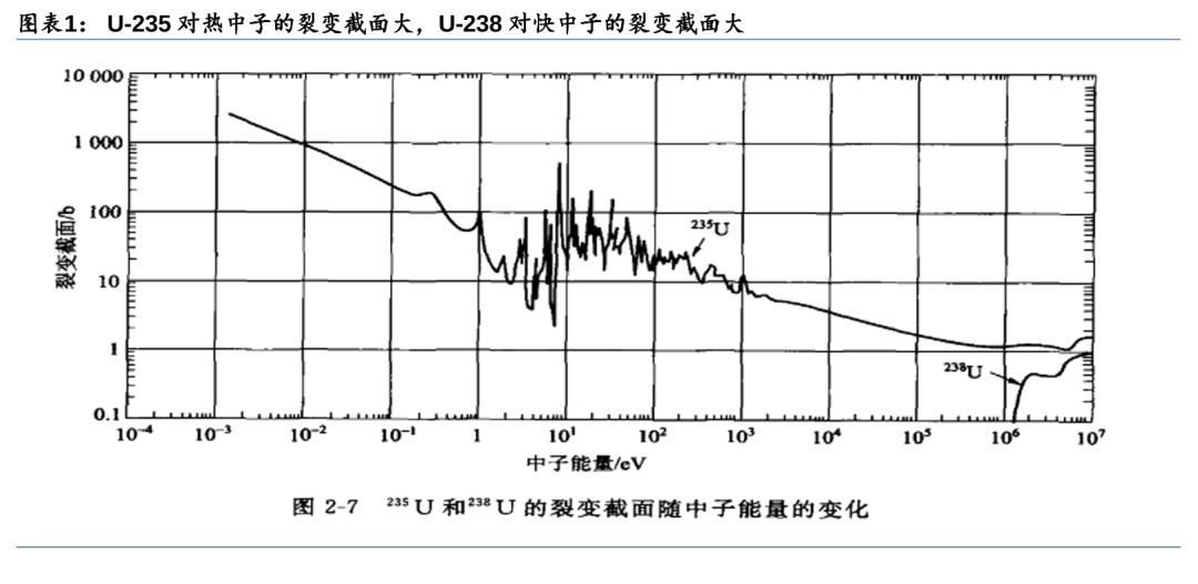 U-235对热中子裂变截面大,需要慢化剂慢化中子提高反应概率。按照中子能量的不同,可将中子分为三类,快中子(E0.1MeV)、中能中子(1eV<><><>< p=""><><><>e0.1mev)和热中子(e1ev)。多数核电站采用u-235作为燃料,其裂变产生的是快中子。u-235对热中子的裂变截面(入射粒子使靶核裂变的概率)大,因此当以u-235作为核燃料时,需要慢化剂将裂变产生的快中子慢化为热中子,从而提高裂变反应概率并维持链式反应不失控;而u-238对快中子的裂变截面大,所以以u-238作为核燃料的快中子堆不需要慢化剂。