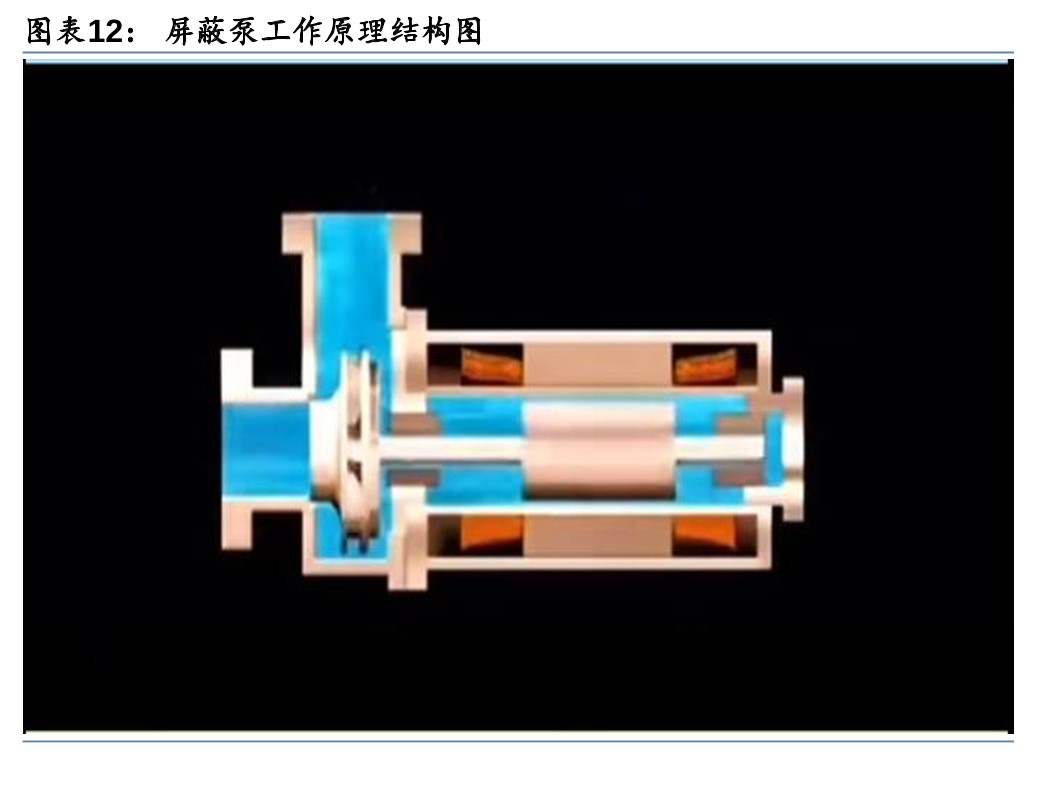 3) 反应堆冷却剂泵(驱动冷却剂循环):又称主循环泵,在正常情况下,冷却剂泵的功能是为反应堆堆芯提供足够的冷却流量并保证反应堆冷却剂的循环;在事故工况下,依靠冷却泵机组的惯性惰转,带出堆芯余热,保证反应堆的安全。水冷堆主泵按结构可分为屏蔽泵和轴封泵,屏蔽泵按结构又可分为屏蔽套泵和湿定子泵。屏蔽套泵的定、转子分别通过屏蔽套来实现与冷却剂的隔离,因此可确保冷却剂实现零泄露;湿定子泵没有阻止水进入定子绕组的隔套,流体直接流过定子绕组带走热量,内部磁损较小,效率比屏蔽套泵高;轴封泵在泵轴和电机轴之间装有复杂的轴密封结构,由于减少了定、转子屏蔽套的涡流损失,因此效率更高。现代压水堆核电厂广泛使用的是轴封泵。