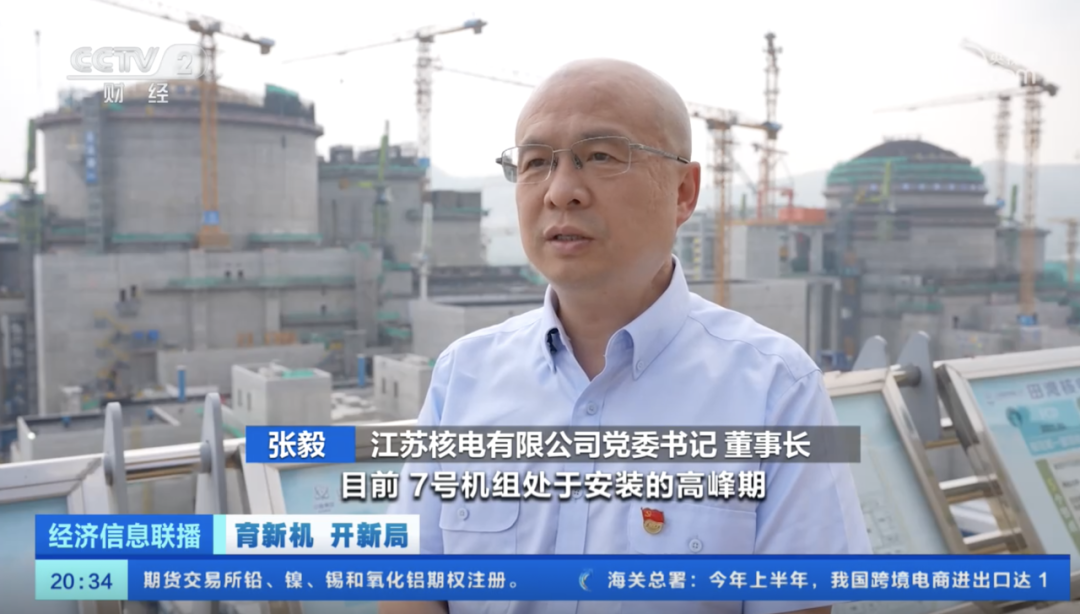 江苏核电有限公司党委书记董事长张毅表示,7号机组处于安装的高峰期,土建在进行相关的收尾工作。8号机组即将由土建转入安装阶段。两台机组先后将于2026年、2027年分别投入商业运行。届时,8台机组总装机总量将超900万千瓦,每年可提供清洁电力超过700亿千瓦时。