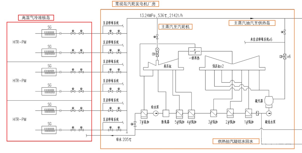 下面结合典型石化工业园区用汽需求及高温气冷堆机组特点介绍一种典型的高温气冷堆汽轮机供热方案。