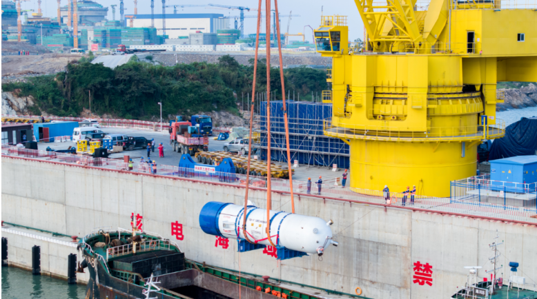 9月26日,由东方电气股份有限公司与东方电气(广州)重型机器有限公司联合体承制的三澳核电项目2号机组稳压器运抵三澳核电项目重件码头。