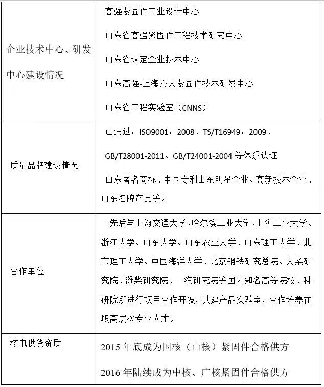 从2015底至今陆续成为国核、中核集中广核三大核电集团紧固件供应商目前未接到客户投诉。