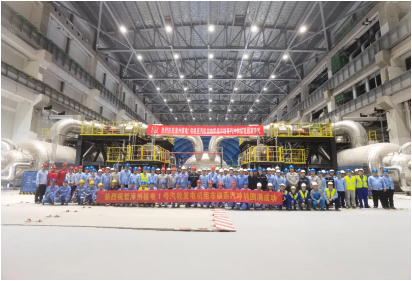 据了解,非核冲转是核电工程提前检验汽轮发电机组及常规岛系统运行质量的重要试验节点,主要通过非核方式提供一定参数的蒸汽,使其冲转汽轮机,通过对汽轮机安全运行及升速过程中各种轴承的振动幅度数值与相位的符合度和临界转速的实测,验证汽轮发电机组各调控设备和保障设备能否正常使用,因此非核蒸汽冲转对整个项目调试意义重大。
