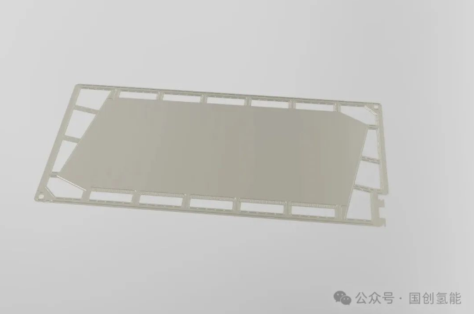 国创氢能大面积钛基材料金属双极板,实现了从设计、材料和生产的全部自主化。在基于钛材的大面积精密薄板冲压技术、双极板表面处理技术和钛材焊接技术等核心工艺上取得突破,解决了钛材批量生产成型难的问题,发挥钛材抗腐蚀的优势结合先进镀层工艺,满足电堆长寿命需求。实现活性面积大于370c㎡,双极板厚度低于0.9mm,微结构尺寸公差小于±0.02mm。