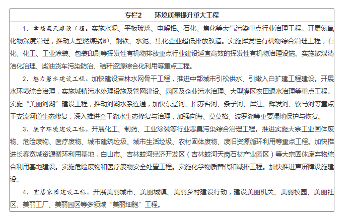 完善生态环境法规标准体系。深入推进法治政府建设,强化美丽吉林建设法治保障,完善生态环境法规标准体系,加快推动生态环境、资源能源等领域地方性法规和政府规章制定(修订)工作,健全重点领域、重点行业地方标准。