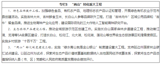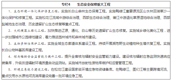 ——高标准筑牢北方生态安全屏障。构建统一有序的生态保护空间格局,加强大长白山区域生态保护力度,坚持山水林田湖草沙一体化保护与修复,全面提升重点区域生态功能,巩固吉林在东北森林带、北方防沙带中的重要作用,不断提升生物多样性保护水平,守牢生态安全底线。