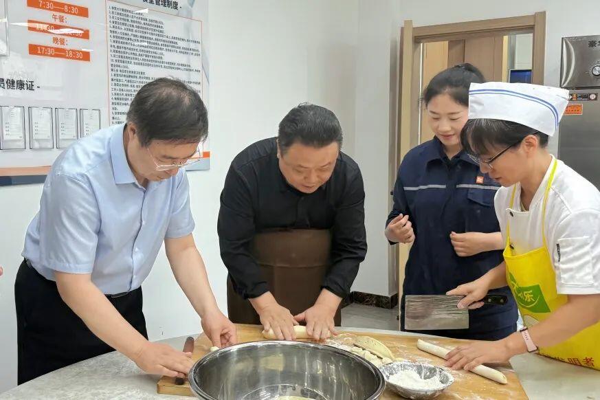 调研结束后,李英峰一行还来到员工生活区,看望和慰问扎根项目一线的员工,在拉家常中了解大家的工作和生活情况,并一同揉面、擀皮、包饺子,共享“深能家园”的温馨。