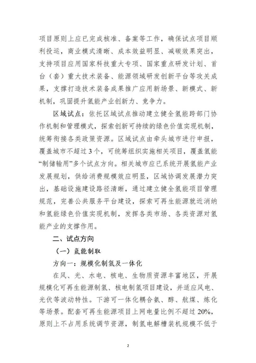 一、本次试点申报括项目试点和区域试点两种形式。试点方向包括氢能制取、氢能储运、氢能应用和共性支撑4个领域和规模化制氢及一体化、先进柔性离网制氢等11个细化方向。