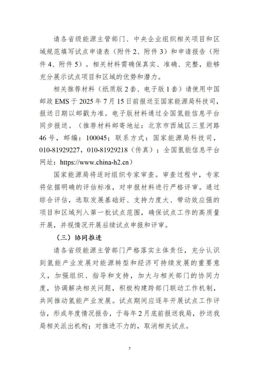 六、试点申报材料(纸质版3套、电子版光盘2张)和市级推荐函(一式一份)请于2025年7月8日前报送我委,电子版申报材料请各市氢能主管部门通过全国氢能信息平台同步报送,我委将作为推荐单位于2025年7月15日前完成组织推荐。