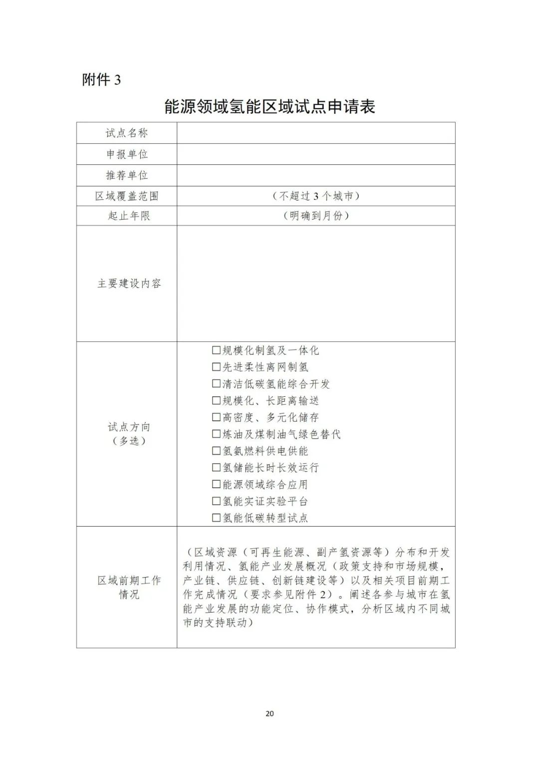 关于组织申报国家能源领域氢能试点工作的通知