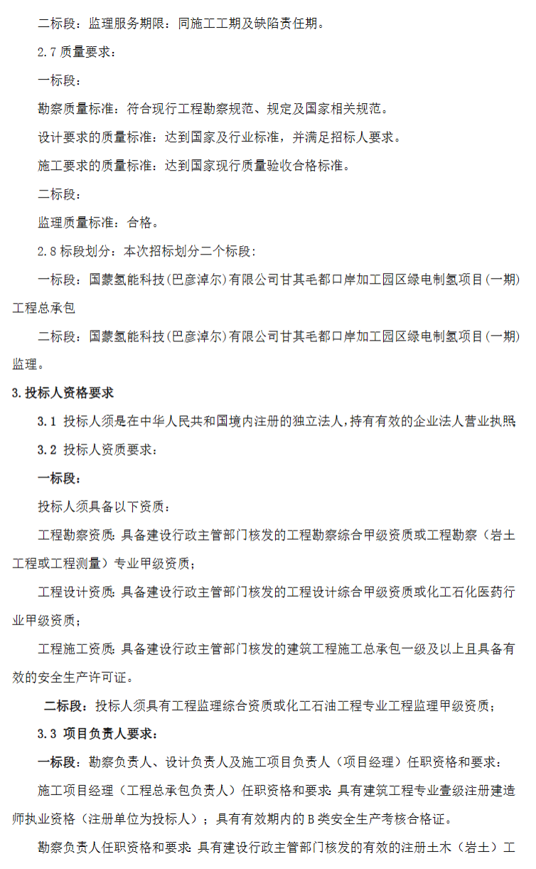 氢能汇获悉,6月20日,国蒙氢能科技(巴彦淖尔)有限公司甘其毛都口岸加工园区绿电制氢项目(一期)-公开招标公告。
