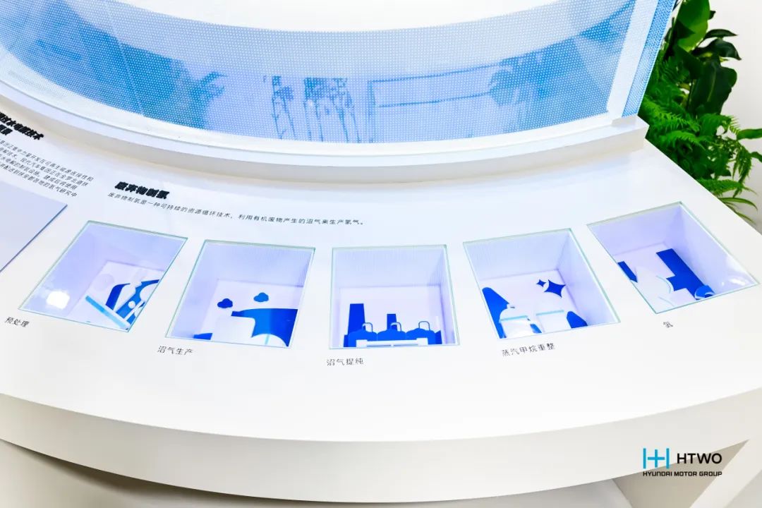 在氢能生产端,现代汽车研发了以有机废弃物(如食物残渣)为原料的清洁氢气生产技术,这是一种在氢能价值链上游的资源循环型制氢流程。通过废弃物制氢(W2H)技术,可从食物垃圾、污水污泥、畜禽粪便等有机废弃物产生的生物甲烷中,改造提取氢气。