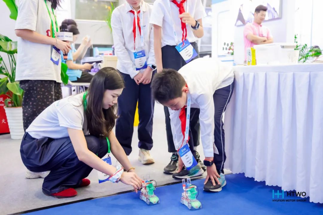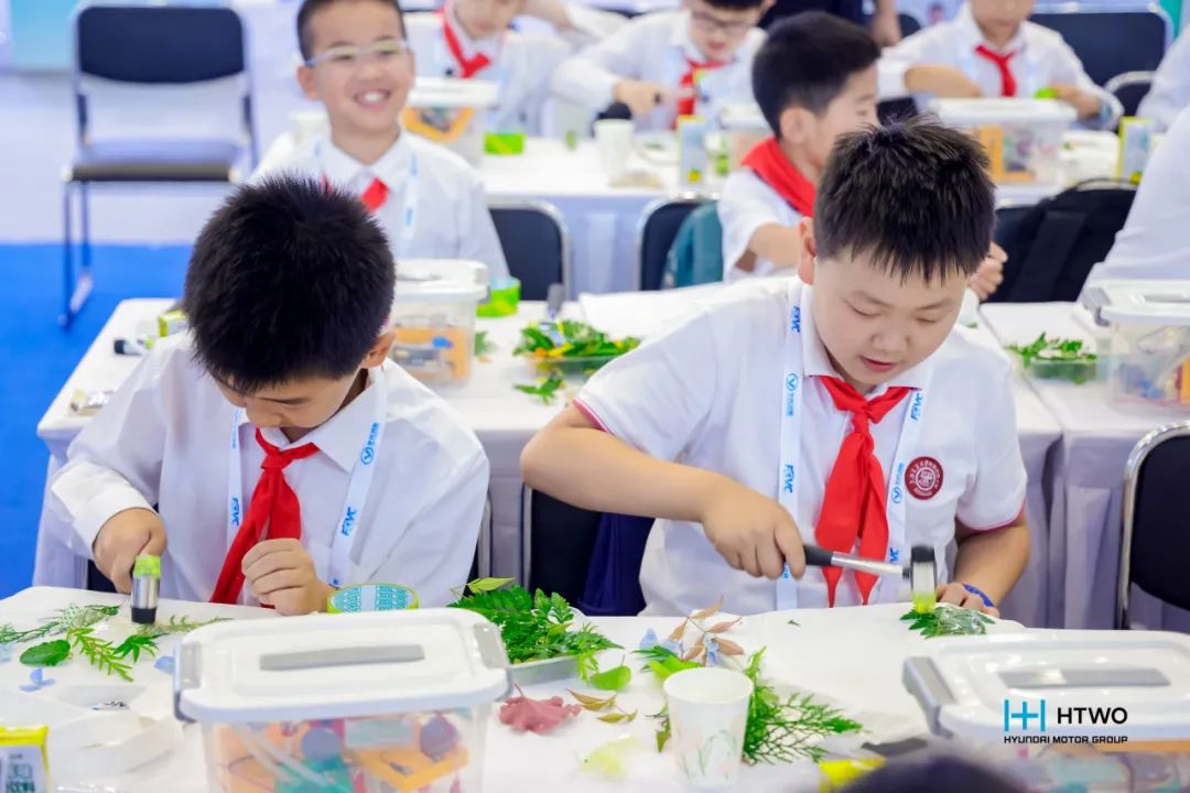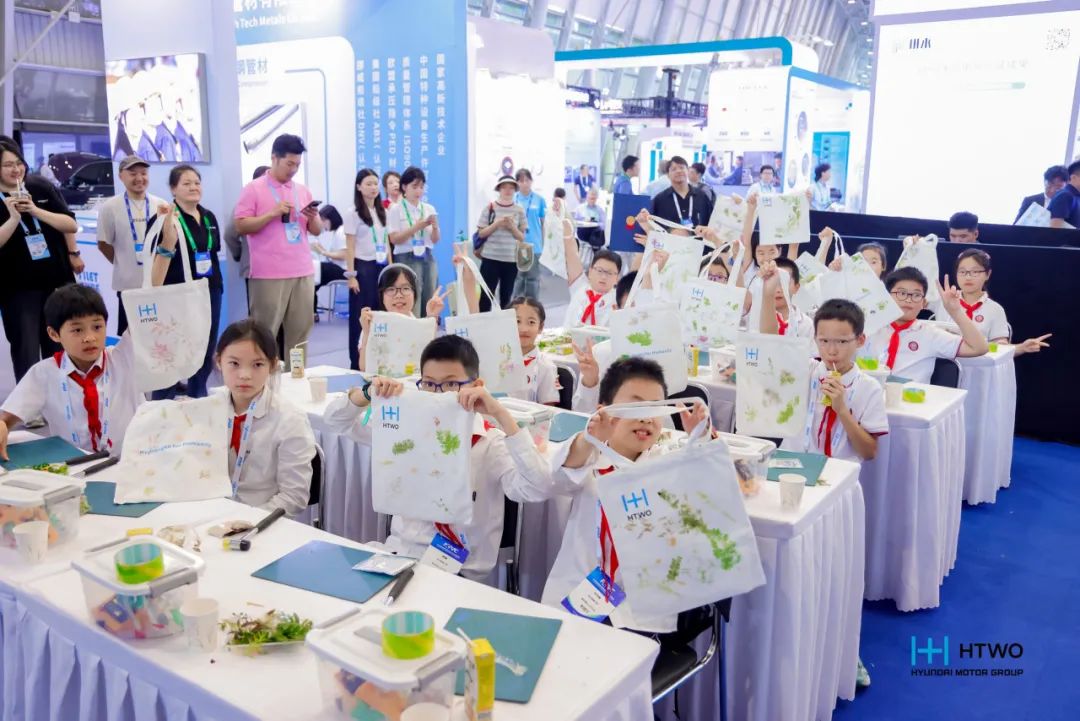 在展会期间,现代汽车HTWO广州还为来自上海交通大学附属实验小学的40名小学生,带来了氢能科普课堂活动,通过科普氢能知识,让学生提高环保意识,成为绿色能源的用拥护者。课程寓教于乐,除了氢能理论知识教学,还融入了氢能模型汽车实验。通过原理学习和实验操作,学生们亲身体验了氢气驱动汽车的完整能量转化链——“水分解制氢、氢氧反应发电、电能驱动机械”的绿色低碳循环。同时,课堂设置植物拓印帆布包环保DIY环节,强调减少化学染料的使用,锻炼学生的动手能力和创新思维,引导学生们资源循环利用的环保理念,为保护地球环境做贡献。学生们纷纷表示,氢能科普课堂活动生动有趣,学有所用,将从小事做起爱护地球。