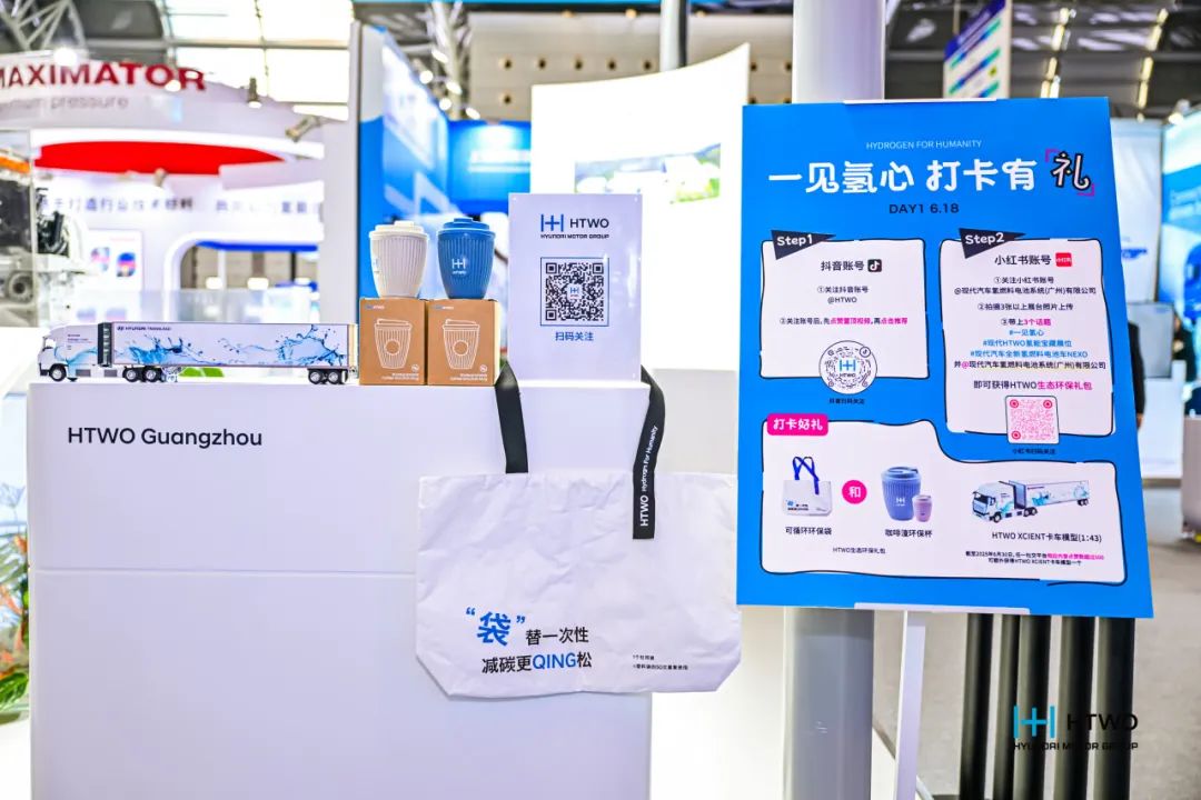 值得一提的是,展会期间,HTWO广州展区特别设置互动打卡活动,观众通过趣味任务即可解锁氢能礼品与品牌环保周边,传递低碳环保理念。活动人气爆满,好评不断。