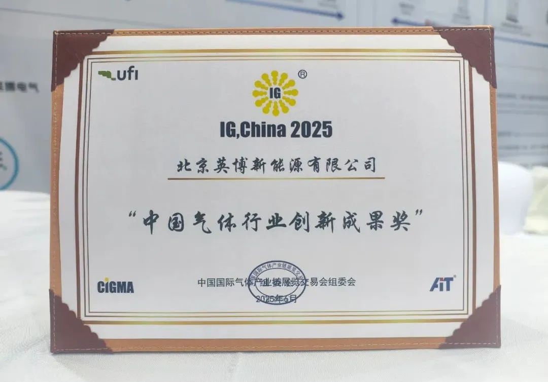 同期,英博新能源所展出的以上产品和方案也受到了中国国际气体产业链展览交易会组委会的高度认可,被授予了“中国气体行业创新成果奖”,该奖项是对英博新能源技术实力与创新理念的权威认可,鞭策着我们继续深耕氢能领域,为客户提供更优质的产品、方案和服务。