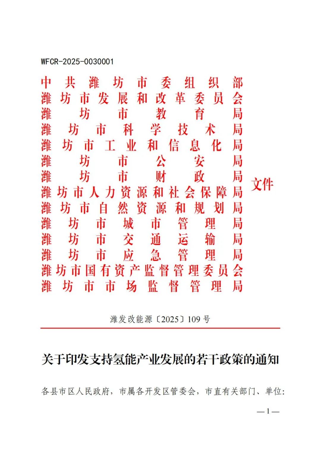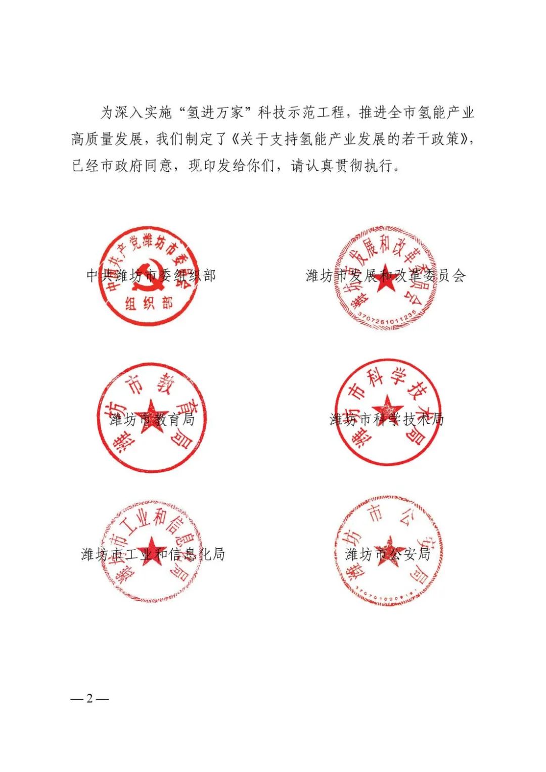 氢能汇获悉,近日,潍坊市财政局发布《关于印发支持氢能产业发展的若干政策的通知》。