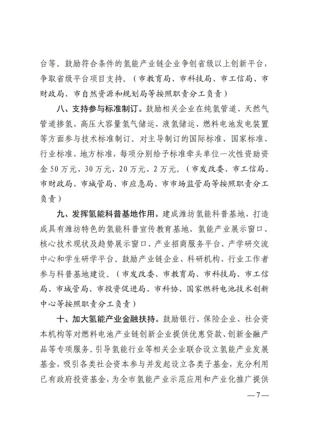 7、支持氢能创新平台建设。鼓励符合条件的氢能产业链企业争创省级以上创新平台,争取省级平台项目支持。