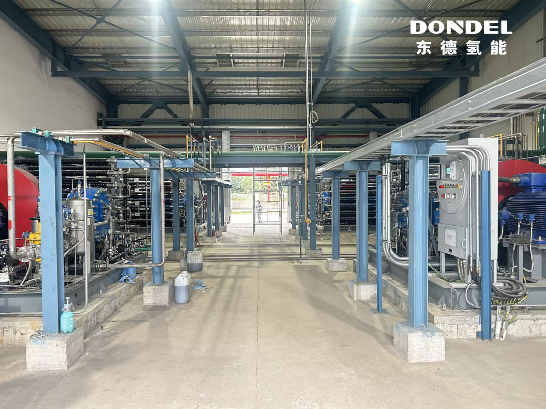 在临沂钢投焦炉煤提纯制氢项目中,东德氢能还提供了8套自主研发的隔膜压缩机组供应,进气压力1.7MPaG,排气压力22MPaG,流量达1000Nm³/h,后端配备充装柱,充装能力8000Nm³/h,是临沂市规模最大的氢能产业聚集地。