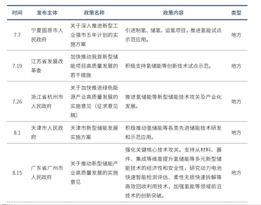 近年来,国家层面和地方层面不断出台政策推动氢储能发展: