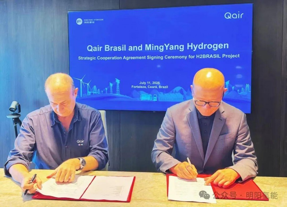 2025年7月11日,北京明阳氢能科技有限公司(以下简称 “明阳氢能”)与Qair Brasil于巴西Ceará州的Fortaleza正式签署制氢装备合作协议,明阳氢能将作为氢能设备和解决方案供应商,执行Qair Brasil在Fortaleza的H2BRASIL项目20MW成套制氢装备的设备合作和运维任务。