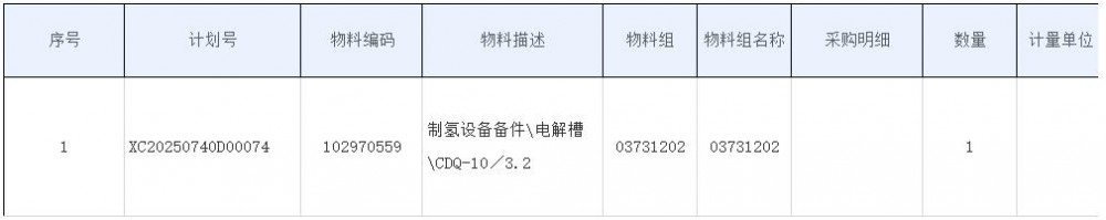 近日,华能山东分公司济宁电厂制氢机备件电解槽采购项目采购结果公告。