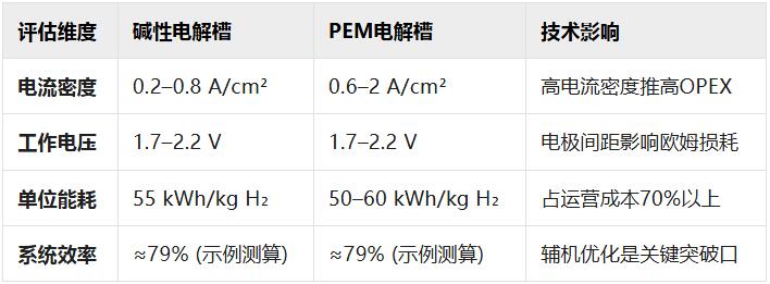 更换周期:碱性槽75,000小时 vs PEM 60,000小时(理想条件)