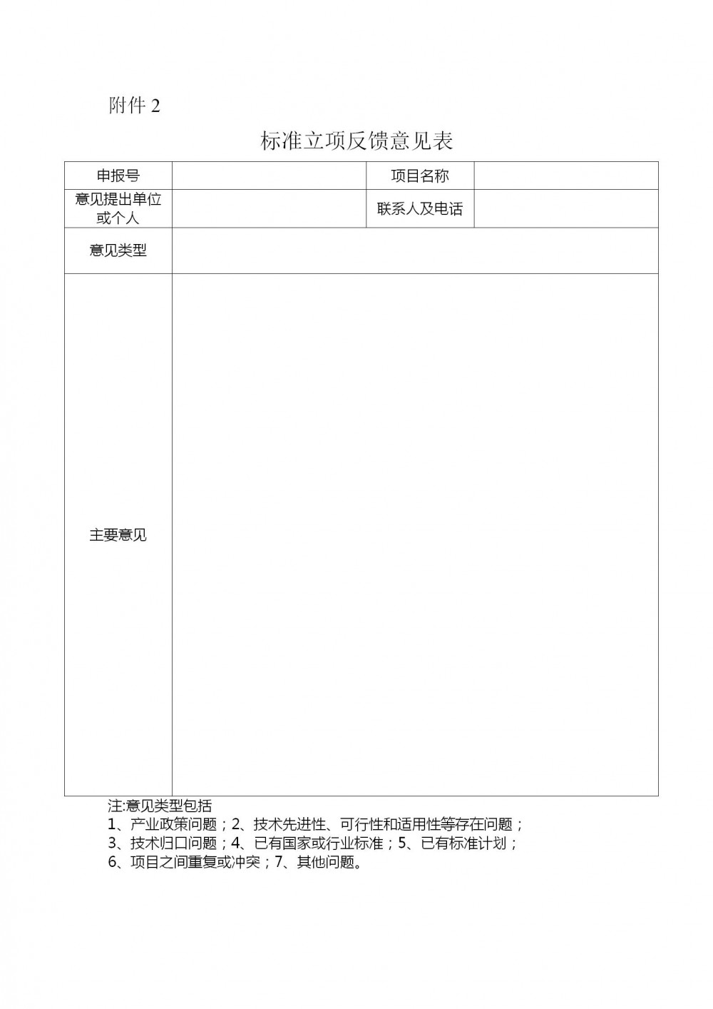 如对拟立项标准项目有不同意见,请在公示期间填写《标准立项反馈意见表》(见附件2)并反馈至我司,电子邮件发送至KJBZ@miit.gov.cn(邮件主题注明:强制性国家标准立项公示反馈)。