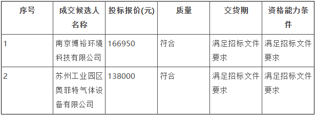 中标侯选人第2名为苏州工业园区奥菲特气体设备有限公司,投标报价13.8万元。