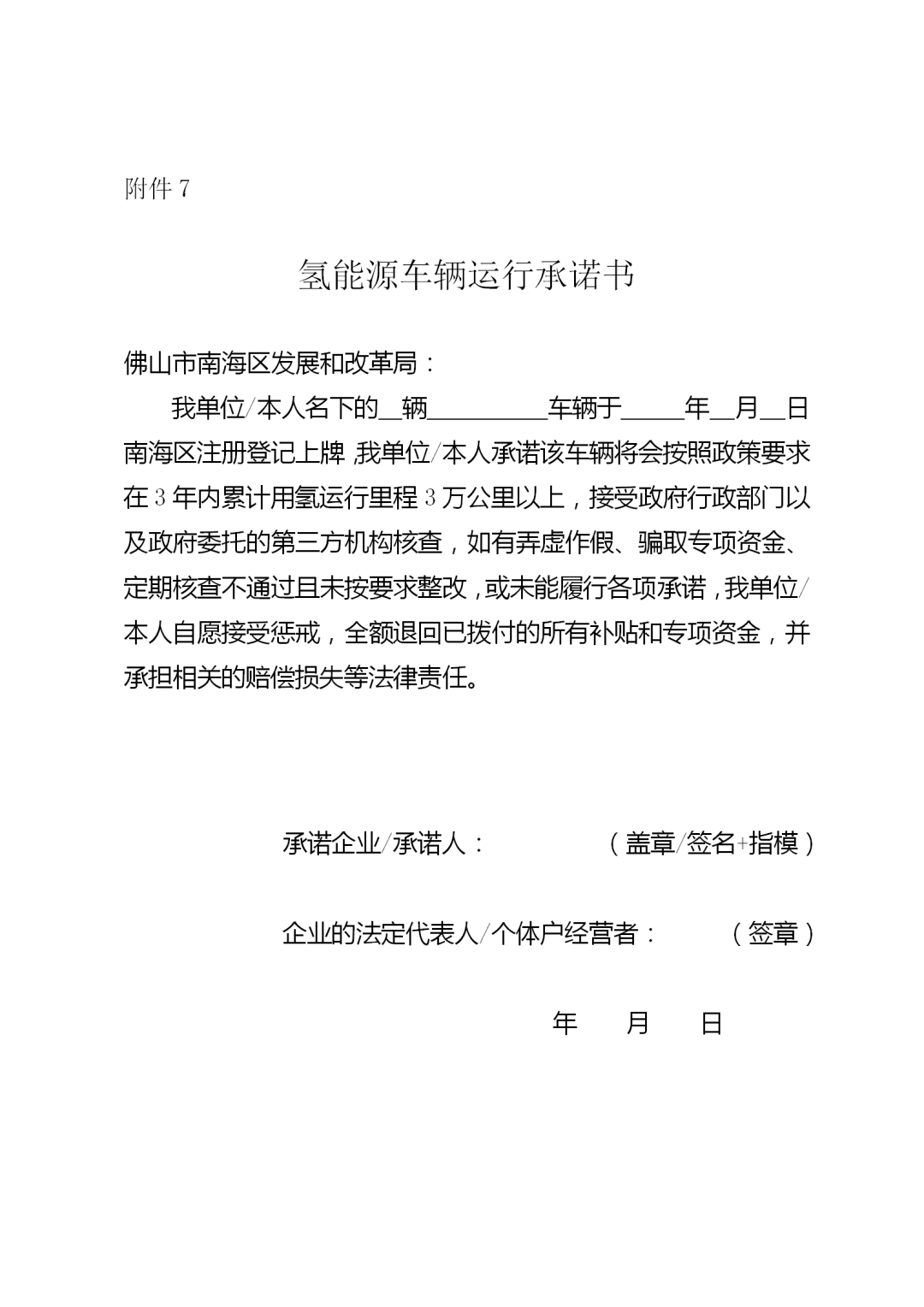 (一)佛山市南海区氢能源车辆运行补贴申请表(见附件4);