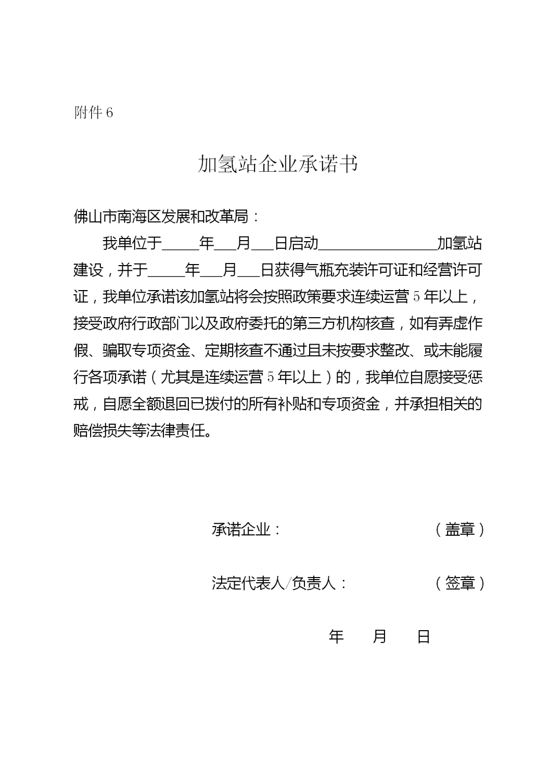 (一)佛山市南海区加氢站运营补贴申请表(附件3);