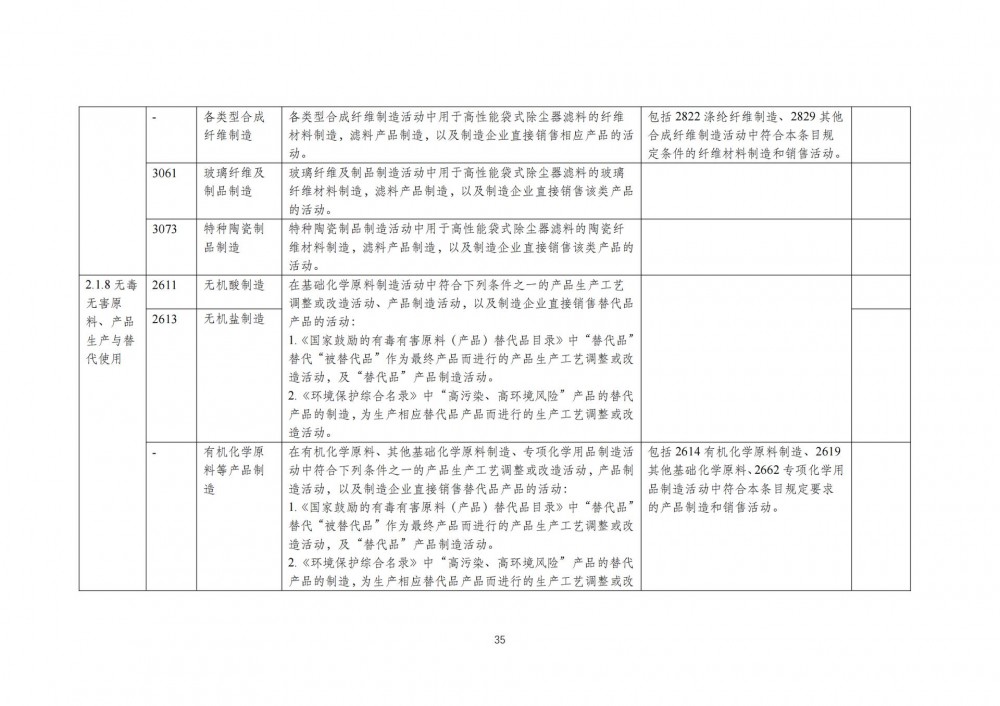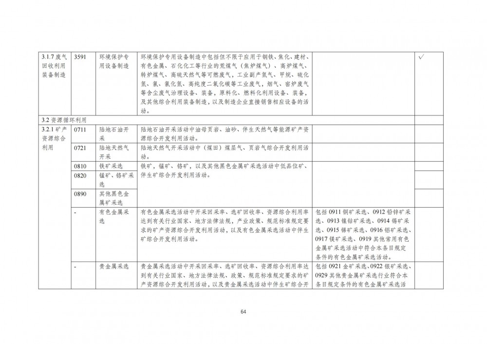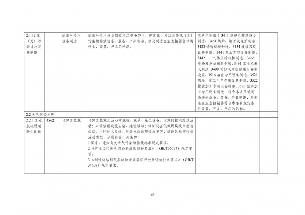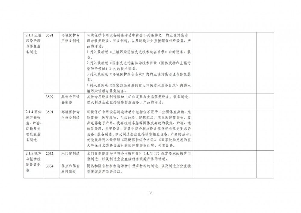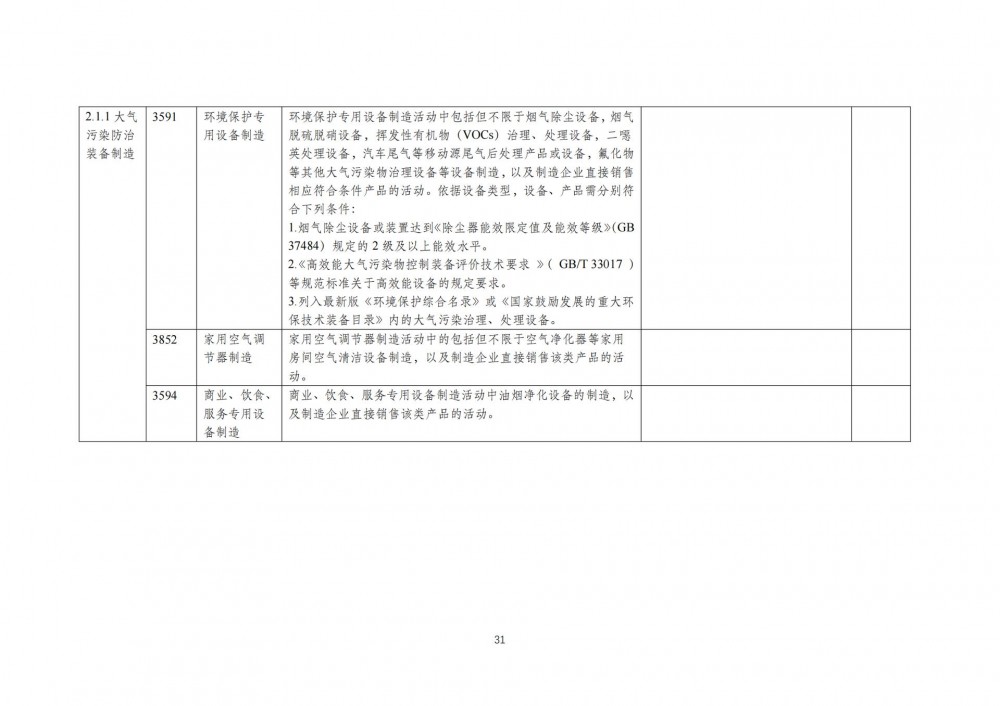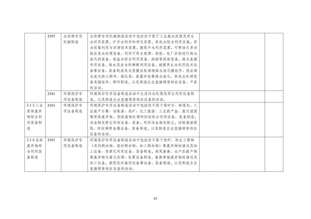 环境保护专用设备制造中包括但不限于应用于钢铁、焦化 、建材、有色金属、石化化工等行业的荒煤气(焦炉煤气 )、高炉煤气、转炉煤气、高硫天然气等可燃废气,工业 副产氢气、甲烷、硫化氢、氯、氯化氢、高纯度二氧化碳 等工业废气,烟气、窑炉废气等含尘废气治理设备、装备 ,原料化、燃料化利用设备、装备,及其他综合利用装备 制造,以及制造企业直接销售相应设备的活动。