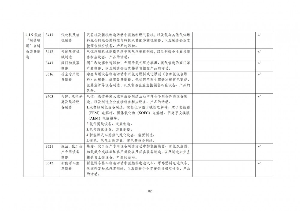 新能源车整车制造活动中氢燃料电池汽车、甲醇燃料电池 汽车,氢燃料发动机汽车制造,以及制造企业直接销售相 应设备、产品的活动。
