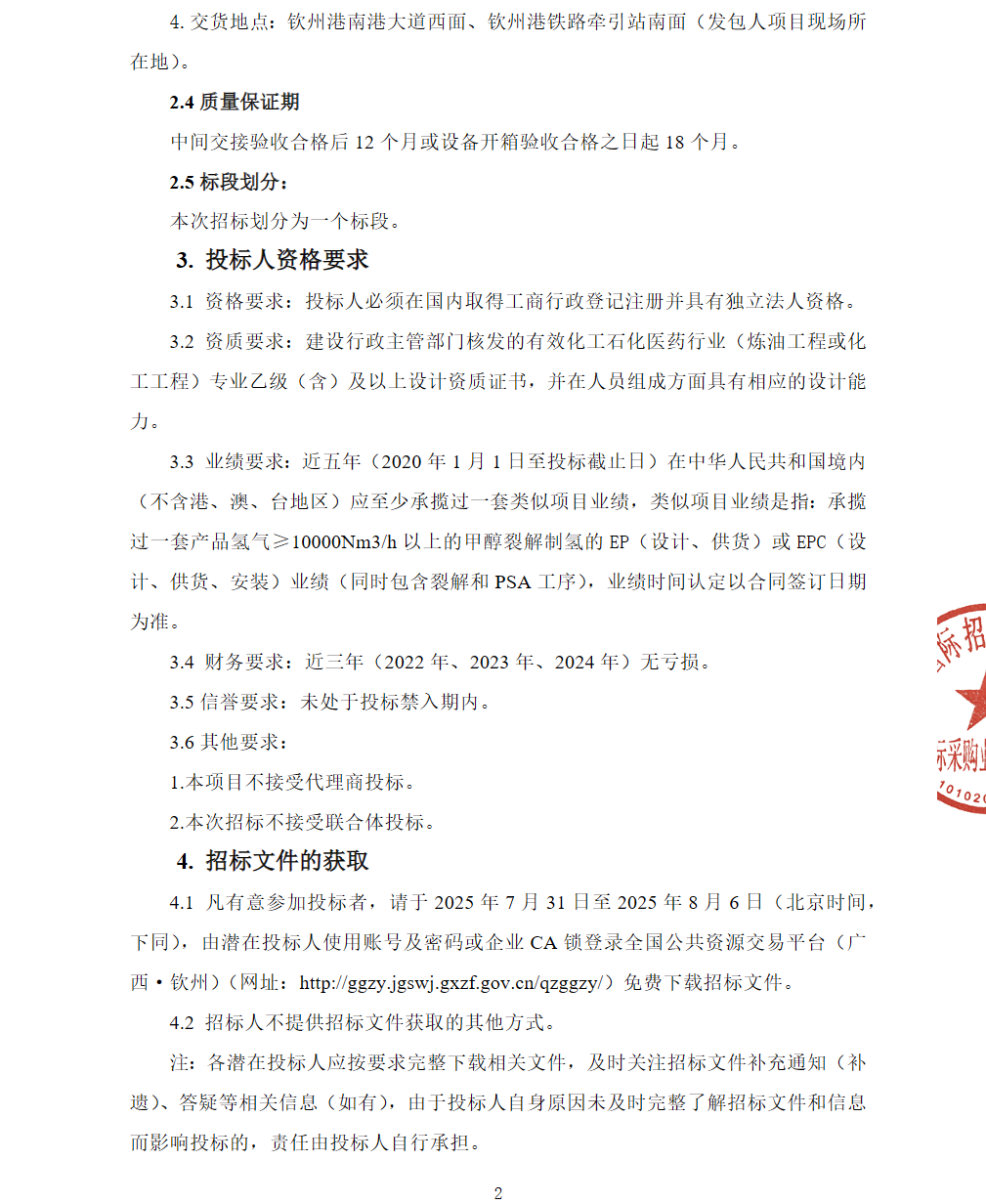7月30日,30万吨/年生物质液体燃料项目15000Nm³/h甲醇制氢装置设计及设备采购(第二次)-招标公告。