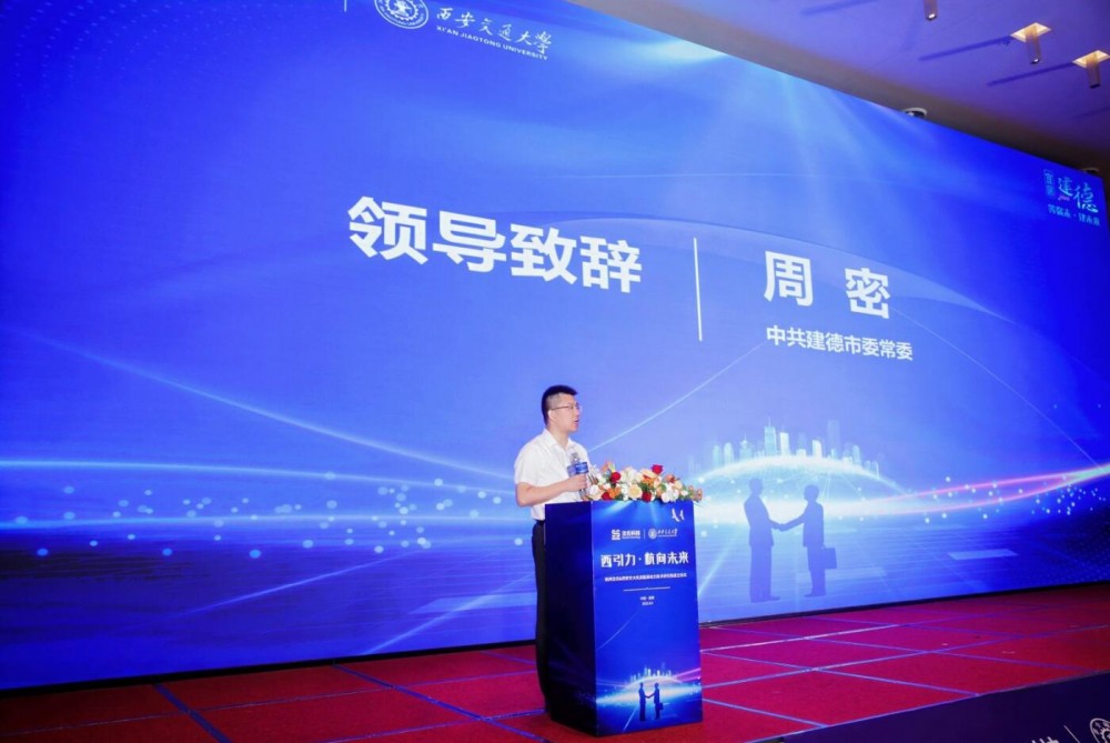 在领导致辞环节,建德市委常委周密表示,沈氏科技与西安交大联合研究院的成立,是建德深化产学研结合的重要里程碑,标志着“西”部的科研智慧与“杭”州的产业活力深度交汇。建德以“绿水青山”为生态底色,以“创新驱动”为发展路径,近年来持续优化创新生态,大力支持企业与高校联合创新。