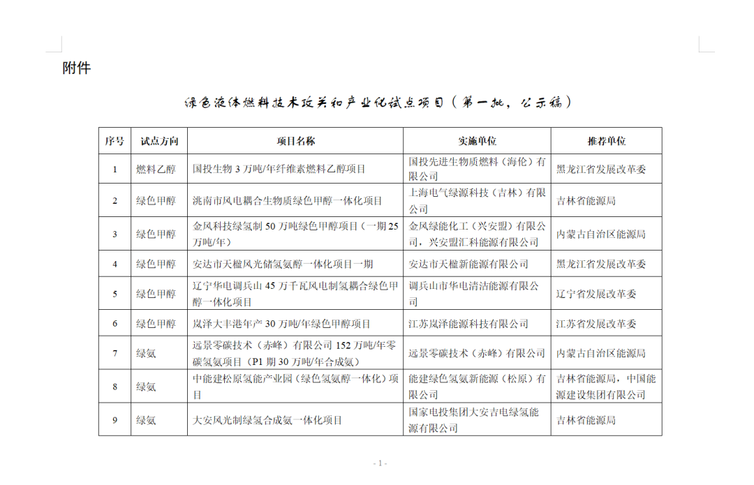 新能源圈获悉,8月7日,国家能源局综合司发布《关于公示绿色液体燃料技术攻关和产业化试点项目(第一批)的通知》。