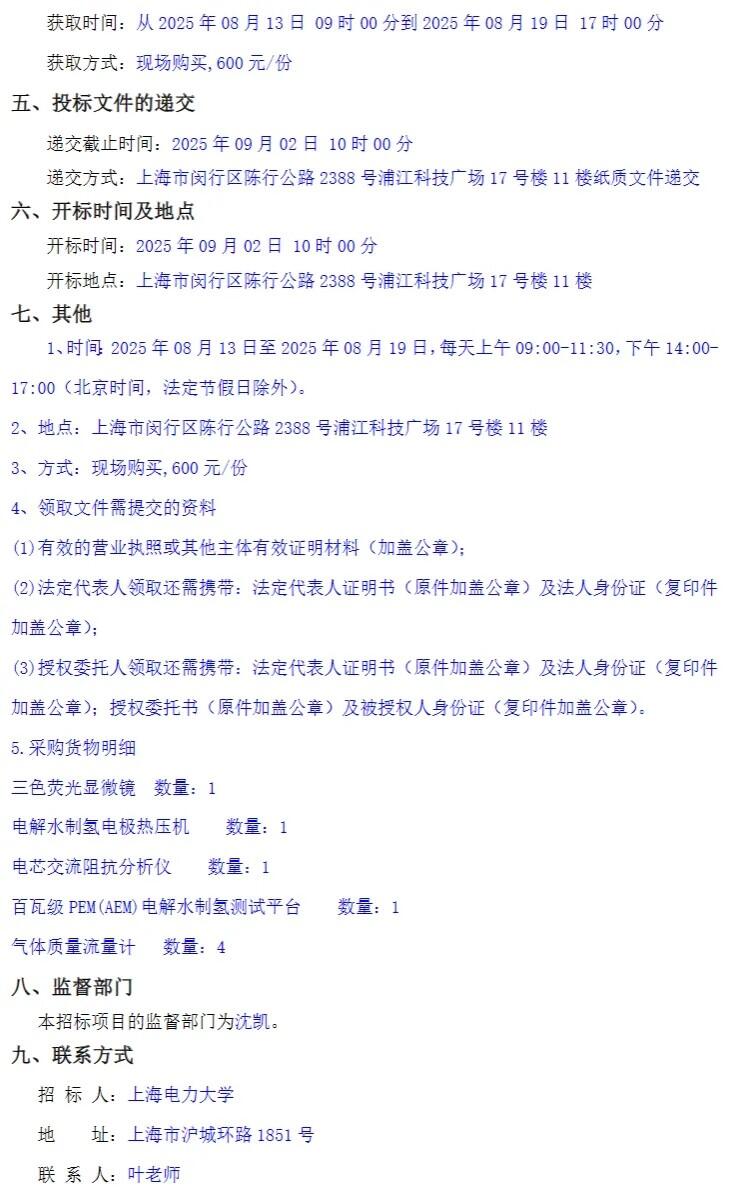 同日,质子交换膜制氢(PEM)系统(二次)启动招标,招标人为上海电力大学,本次招标为其中的共享单车综合治理工作。