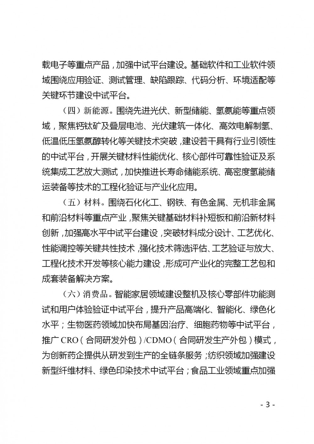 文件指出,新能源。围绕先进光伏、新型储能、氢氨能等重点领域,聚焦钙钛矿及叠层电池、光伏建筑一体化、高效电解制氢、低温低压氢氨醇转化等关键技术突破,建设若干具有行业引领性的中试平台,开展关键材料性能优化、核心部件可靠性验证及系统集成工艺放大测试,加快推进长寿命储能系统、高密度氢能储运装备等技术的工程化验证与产业化应用。