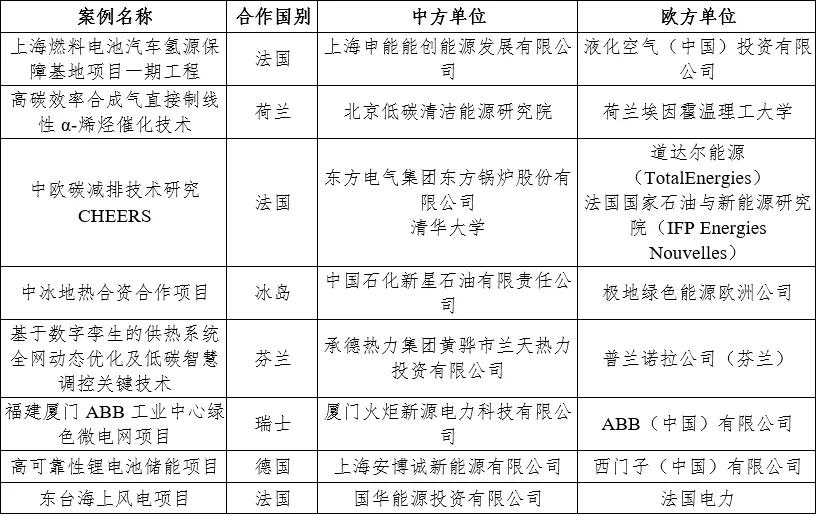 首批中欧能源合作典型案例名单